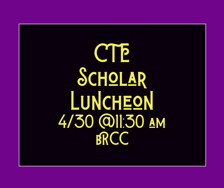 CTE Scholars Luncheon (invitation only) will be held on Thursday, April 30th, at 11:30 am at Blue Ridge Community College